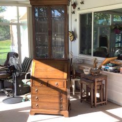Desk Antique Secretaries Desk With Leaded glass Door hutch$350Ramona, CA
