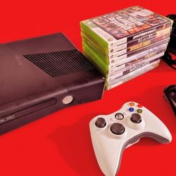 Microsoft Xbox 360 slim with 2 controllers 10 games HDMI cord power supply $125Whittier, CA