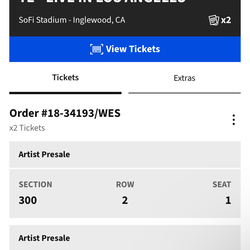 2 tickets kanye at sofi$1,100Pomona, CA