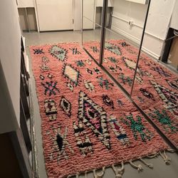 Handwoven Wool Berber Runner Rug: Moroccan Geometric Design Pink Wool$350Los Angeles, CA