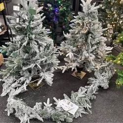 New 2 x 3.5FT Pre Lit Snow Flocked Christmas Tree + Wreath + Door Decoration Premium Quality$50Artesia, CA