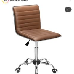 Furmax Leather Swivel Office Chair - Mid Back Vanity Chair for Makeup Desk, Armless Ribbed Task Chair with Ergonomic Support (Brown)$30Torrance, CA