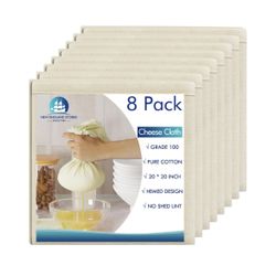 8 PCS Reusable Cheesecloth, Grade 100, 20x20 Inch Hemmed Cheese Cloth for Straining Craft, 100% Cotton Unbleached Cloth Strainer for Cooking, Baking, $9Downey, CA