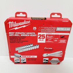 Versatile Milwaukee 25 piece 1/4" drive socket and ratchet set. Has both Metric and SAE sizes. Sockets have four flat sides, anti-roll design, and are$55Santa Ana, CA