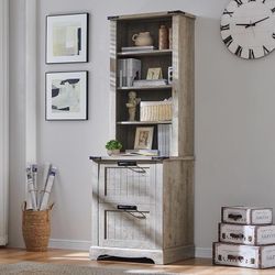 Bookcase with 2 File Drawers, 72" Tall Farmhouse Bookshelf with Storage and Adjustable Shelves, 4 Tier Rustic Wood Bookshelf with Cabinet fo$85Ontario, CA