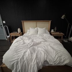 Queen Solid Wood Storage Bed Frame – Rattan Headboard – Living Spaces Mariko $650Long Beach, CA