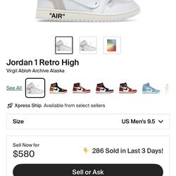 Virgil Abloh Archive Alaska Off White Jordan 9.5$600City Of Industry, CA