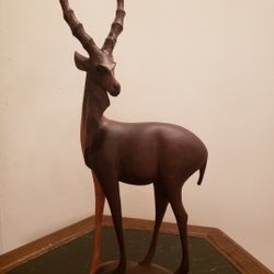 Vintage Hand Carved Wooden Deer Sculpture