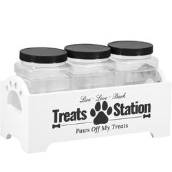 Dog Treat Container, Food Storage Container with 3 Plastic Dog Treat Jars, Reusable Cat Treat Container, Pet Treat Storage Organizer, Wood Dog Treat H$10Rancho Cucamonga, CA