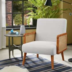 Fabric Upholstered Accent Chair,Mid-century Armchairs with Rattan Armrests,Modern Living Room chairs for Bedroom Reading Room,Beige$65Orange, CA