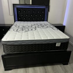 Queen Bed / Mattress Included / Platform Bed W/ Built-In LED Lights Color: Black. 🔥 Cama Queen Size / Colchon Incluido. Cama Con Luz Led$650Los Angeles, CA