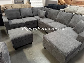 NEW Large U Shape Sectional Sofa and Reversible Left Right Chaise with Ottoman Set GREY Chenille Fabric Ashley Style BIG Seccional COUCH SALE Black$799Tustin, CA