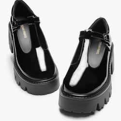 Womens Black patent leather chunky heels$15Long Beach, CA