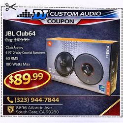 JBL Club Series Car Speaker Set 6 1/2" 2-Way Coaxial Speaker System 180 Watts Club64 🚨 Payment Options Available 🚨 No Credit Needed 🚨 $1Los Angeles, CA