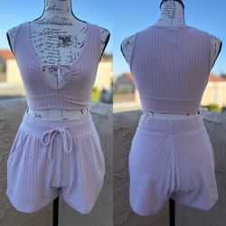Garage lilac ribbed lounge crop top and shorts two-piece co-ord set size XS$46Hermosa Beach, California