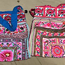 Lot of 2 Colorful Thai Embroidered Tote Bags Boho Hmong Style Floral Festival Purse$50Artesia, CA