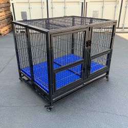(NEW) $370 Stacking Dog Cage (Set of 2) Heavy Duty 41x31x65” Crate Kennel w/ Plastic Tray, Wheels$370Whittier, CA