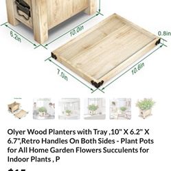 Olyer Wood Planters with Tray ,10" X 6.2" X 6.7",Retro Handles On Both Sides - Plant Pots for All Home Garden Flowers Succulents for Indoor Plants , P$15Chino, CA
