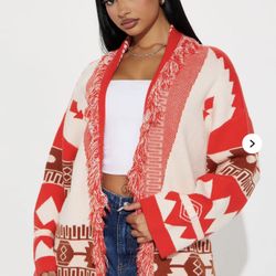 Brand New with Tags Red And White Fringe Cardigan In Native Ethnic Tribal Style $30Arcadia, CA
