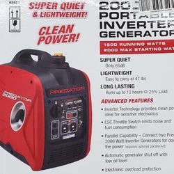 PREDATOR 2000 Watt Inverter Portable Generator, Super Quiet, Clean Power, Used Once$350Los Angeles, CA