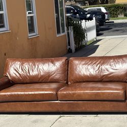 West Elm Tan Leather Hamilton Sofa 81"$300Long Beach, CA
