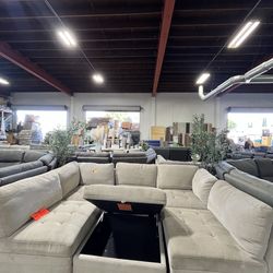 Grey Couch With Storage Ottoman$450Long Beach, CA
