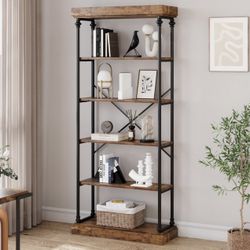 6 Tier Bookshelf Industrial Bookcase Wood Tall Standing Bookshelves Wood Vintage Display Rack Rustic Bookshelf$130Costa Mesa, CA