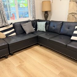 Sectional Sofa Reversible set up, Black Fur like Jumbo Corduroy fabric, New Especial price$560Santa Ana, CA