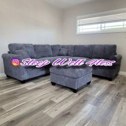 Sectional Sofa With Storage Ottoman Dark Grey Corduroy New$419Norwalk, CA