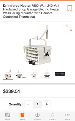 Dr Infrared Heater 7500-Watt 240-Volt Hardwired Shop Garage Electric Heater Wall/Ceiling Mounted with Remote Controlled Thermostat$160Garden Grove, CA