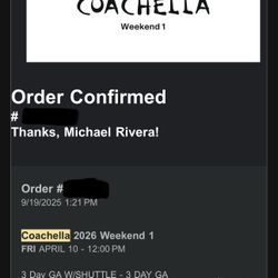 Coachella Weekend 1 + Shuttle Pass$900Whittier, CA