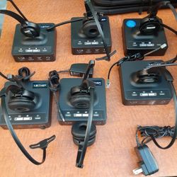 Leitner wireless single-ear headsets and their charging bases. $100Bellflower, CA