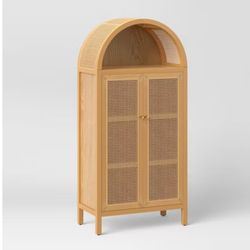 Rattan Arched Wood Cabinet Light Brown Threshold Storage Armoire with Adjustable Shelves$330Lodi, CA