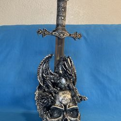 17” Silver Dragon Skull Stainless Steel Dagger Sword Letter Opener with Stand$25Citrus Heights, CA