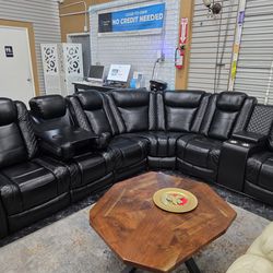 Black Leather Sectional /power/ Living-room Set/ LED Lights $799Citrus Heights, CA