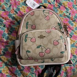 New with tags Coach Mini Court Backpack in Signature Canvas Backpack with a heart-shaped cherry print.$225Carmichael, CA