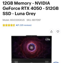 Lenovo LOQ 15.6” Gaming Laptop (RTX 4050 / Ryzen 5 / 12GB / 512GB)$500Woodland, CA