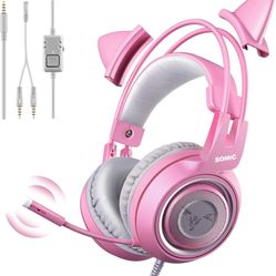 SOMIC G951s Pink Stereo Gaming Headset with Mic for PS4,Xbox,PC,Mobile Phone,3.5mm Noise Reduction Cat Ear Headphones Lightweight Over Ear Headphones $20Sacramento, CA