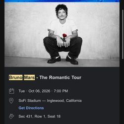 Bruno Mars Ticket - The Romantic Tour Oct. 6$250San Diego, CA