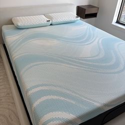 Queen Memory Foam Mattress + Upholstered Bed Frame - Excellent Condition$175San Diego, CA