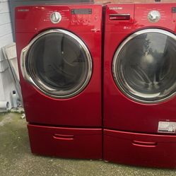 SAMSUNG RED STEAM FRONT LOADING WASHER AND GAS DRYER SET PEDESTAL $650Temecula, CA