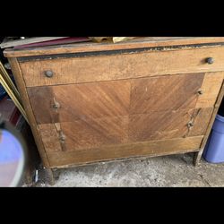 Mid Century Dresser Highboy 3 Drawer TIGER MAPLE Brass Chest Original Hardware 35” Height 41” Width 19” Depth By MORRIS FURNITURE MFG. CO. LOS AN$50San Diego, CA