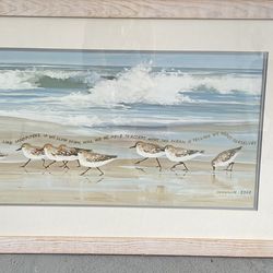 shannon Daigle fine art sandpipers beach ocean waves large framed painting 24x35” acrylic New Original art Ready to hang “Everyone is rushing like$325San Diego, CA
