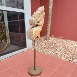 Old 100 Years Hand Carved Wheel On Iron Stand$500Temecula, CA