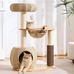 Natural Wood Cat Tree for Indoor Cats Large Adult, 38in H Cat Tree Tower with Scratching Posts, Hand$65Temecula, CA