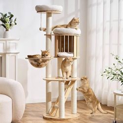 Solid Wood Cat Tree for Indoor Cats Large Adult, 61.5in Tall Cat Tower with Sisal Scratching Posts,$95Temecula, CA