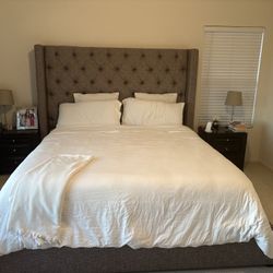 California King Upholstered Bed Frame with Tall Tufted Headboard – Excellent Condition$900San Diego, CA