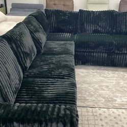 Brand New Black Fur-Like Jumbo Corduroy Sectional + Ottoman (92"×104") $899San Diego, CA