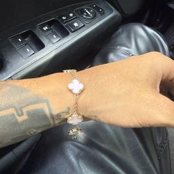 Fashion Silver Bracelet With Mother Of Pearl Floral Clover Links 7.5"$250San Diego, CA