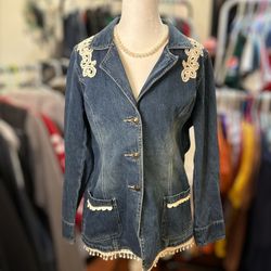 Vintage French Cuff Denim Jacket With Lace Detailing $39San Diego, CA